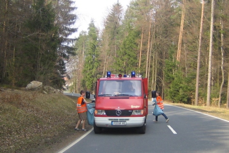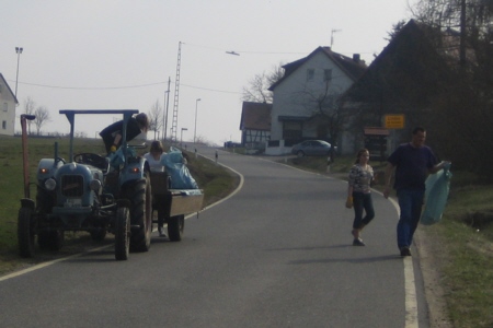 | Die FFW Geschwand und der FSV Geschwand führten auch 2009 die jährliche "Aktion Saubere Landschaft" durch. Bei herrlichen Frühlingstemperaturen und sonnigem Wetter beteiligten sich 26 Helfer dabei, den Dreck den rücksichts- und gewissenlose Menschen achtlos in den Wäldern und an den Straßenrändern um Geschwand entsorgten zu sammeln und einer ordnungsgemäßen Entsorgung zuzuführen. |