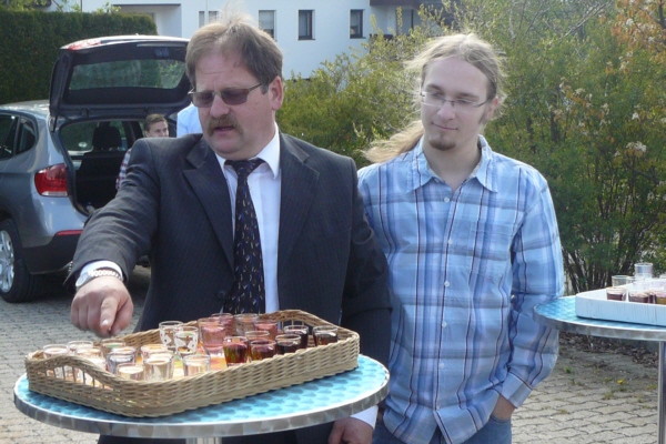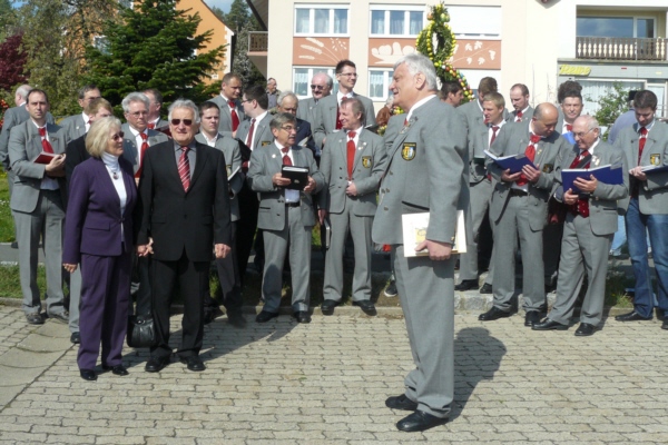 Osterkonzert am Osterbrunnen in Geschwand grautulierte der GGG dem Jubelpaar nochmals mit zwei Liedern und Bürgermeister Willi Müller im Namen der Gemeinde Obertrubach. Im Anschluss machten sich die Sänger dann noch auf nach Bieberbach um dort am Osterbrunnen bei herrlichen Wetter die vielen Besucher auf den Frühling einzustimmen. Von Franz Galster verfasste Berichte über das Singen an den Osterbrunnen sind im "Fränkischen Tag" und in den "Nordbayerischen Nachrichten" erschienen. |