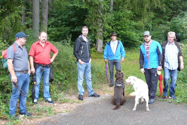 Die kleine Wandergruppe am Waldesrand am Truwier-Weg