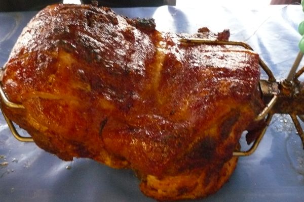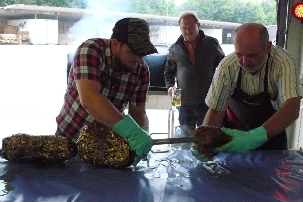 "GGG-Vereins-Fleischer" Winfried Dorn bei der Zubereiung von drei Sauschlegeln