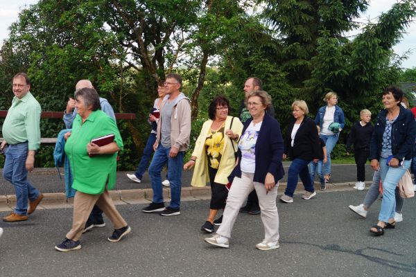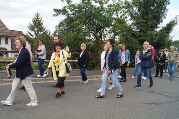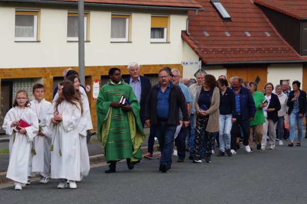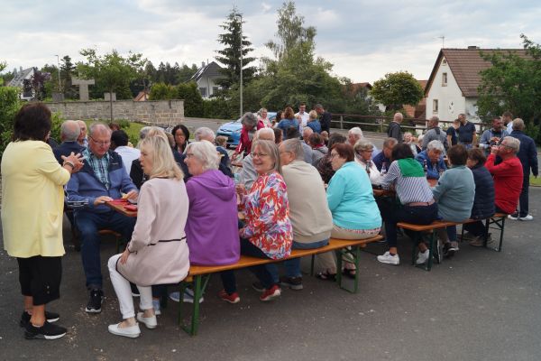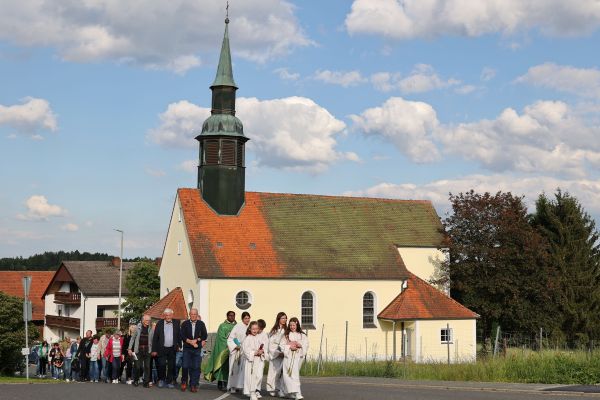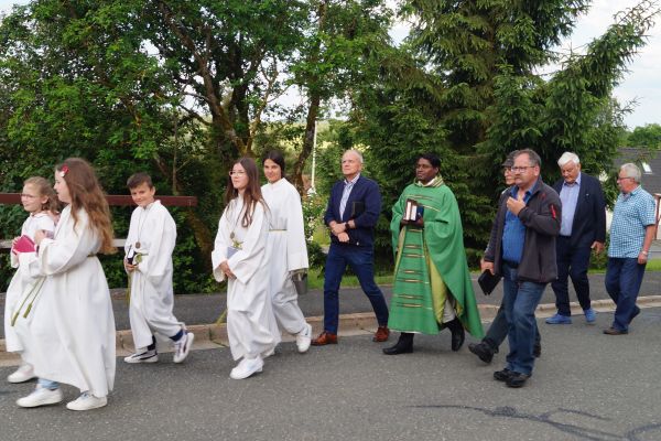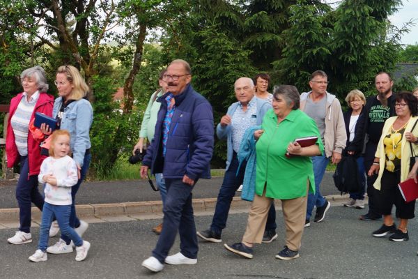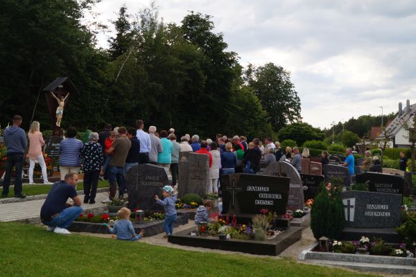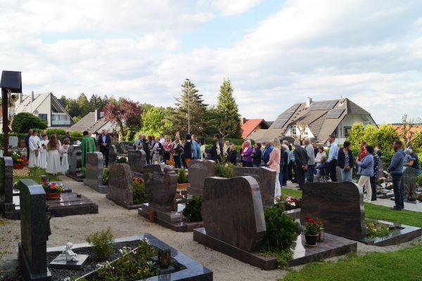 Mit einer kleinen Feierstunde wurde am 10. Juni 2024 das neurestaurierte Kreuz auf dem Friedhof in Geschwand gesegnet. Kaplan Pater Daniel Bara zelebrierte in der Flilialkirche "Mariä Himmelfahrt" in Geschwand den Festgttesdienst. Nach dem Gottesdienst zogen die Gläubigen in einem kleinen Kirchenzug hoch zum Friedhof. Dort segnete Kaplan Pater Daniel Bara das neurestaurierte Kreuz. Im Anschluss trafen sich die gemütliches Besammensein neben der Mariengrotte. Die Restaurierung des Kreuzes wurde durch eine großzügige Spende von Andreas Eckert aus Buchau ermöglicht. Günther Hendl aus Schnaittach führte die Restaurierung des Kreuzes durch.