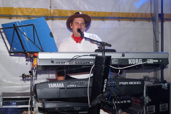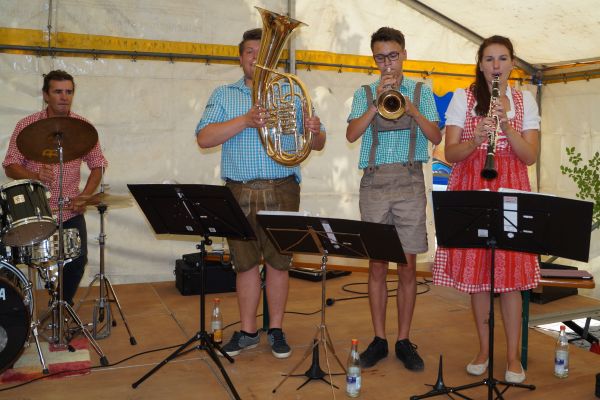| Eine völlig neu zusammengestellte Blaskapelle präsentierte Chef-Organisator Patrick Grellner am Patronatsfest 2017 |