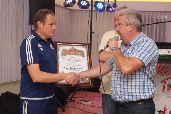 Mit etwas Verspätung feierten der TSV Geschwand und der Kaiserbräu aus Neuhaus/Peg. am 22. September 2017 ihre 25-jährigen Partnerschaft. Bis 1991 wurde das Sportheim des TSV Geschwand vom Brauhaus Forchheim mit Bier und Getränken versorgt. Nach der Schließung des Brauhauses Forchheim musste sich der TSV Geschwand einem neuen Partner für seinen Wirtschaftsbetrieb suchen. Unter der Federführung von Ewald Mayer wurden Gespräche mit Brauereien aus Forchheim, Erlangen und Kulmbach geführt. Auf Anraten von Simon Fett wurden auch mit der Kaiserbräu aus Neuhaus/Peg. Verhandlungsgespräche geführt. Am 07. August 1991 war es dann soweit. Nach mehrstündigen Verhandlungen unterzeichneten die Verhandlungspartner von Kaiserbräu und Ewald Mayer für den TSV Geschwand einen Partnerschaftsvertrag. Gefeiert wurde dieses Jubiläum im Anschluss an das Fußballspiel der Altherrenmannschaft der Spielgemeinschaft Geschwand/Wolfsberg gegen das Traditionsteam des 1.FC Nürnberg. Die Kaiserbrauerei in Vertretung des Gebietsleiter für Oberfranken Reinhard Schmidt, der für den erkrankten Geschäftsführer Josef Laus erschien, überreichte dem TSV Geschwand (in Person Ewald Mayer) eine Urkunde und einen Gutschein über eine nicht unerherbliche Menge an Freibier.