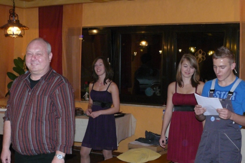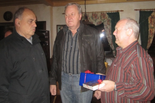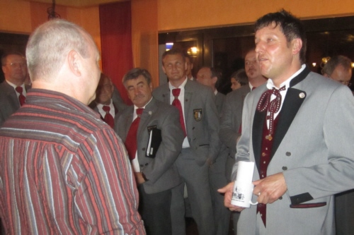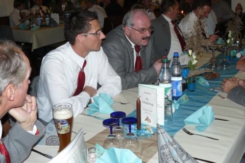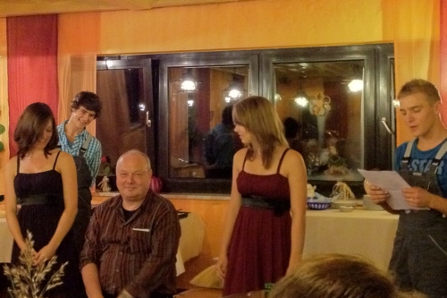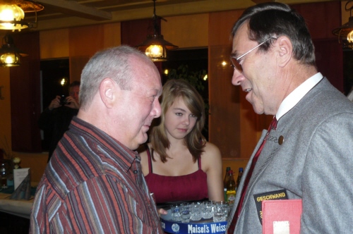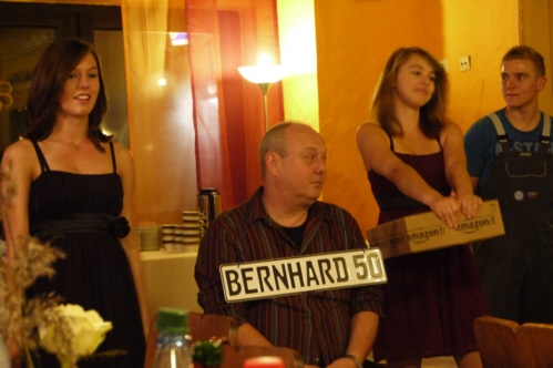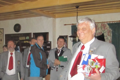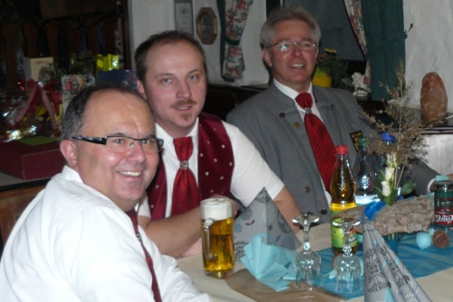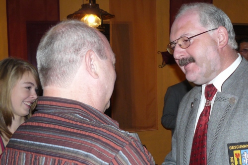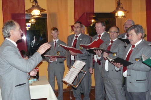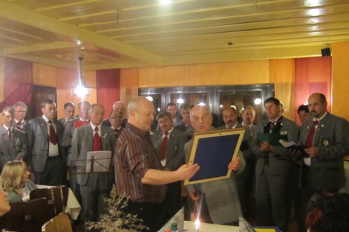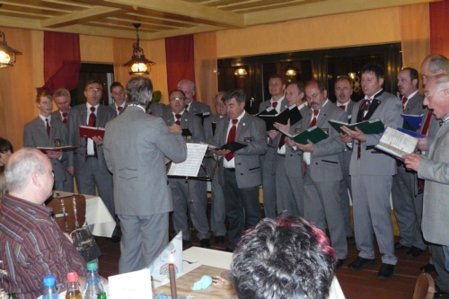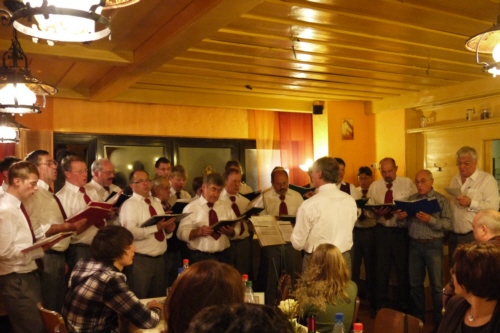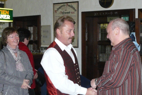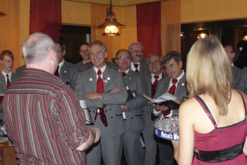 | Eine eigens zum 50. Geburtstag von Bernhard Arnold umgetextete Version des aus Irland stammenden Volksliedes "Lang ist es her" von Thomas Haynes Bayla aus dem 19. Jahrhundert als Ständchen vom Gesangverein "Gemütlichkeit" Geschwand. |